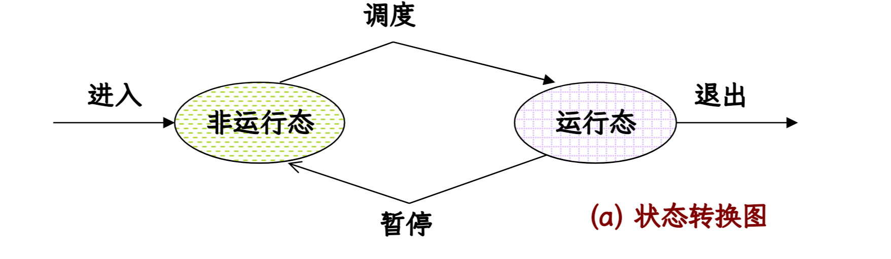 操作系统笔记3——进程和线程 一个正在执行中的程序。一个正在计算机上执行的程序实例。能分配给处理器并由处理器执行的实体。一个具有以下特征的活动单元:一组指令序列的执行、一个当前状态和相关的系统资源集。运行态:该进程正在执行;假定只有一个处理器,因此一次最多只有一个进程处于这一状态也就是说,100个在内存中的进程,最多只有一个在运行态(可以有0个)就绪态:进程做好了准备,只要有机会就开始执行;100个在内存中的进程有最多有99个在就绪态阻塞/等待态:进程在某些事件发生前不能执行,如 I/O 操作完成;