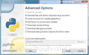 3、双击exe文件进行安装,如下图,并按照圈中区域进行设置,切记要勾选打钩的框,然后再点击Customize installation进入到下一步: