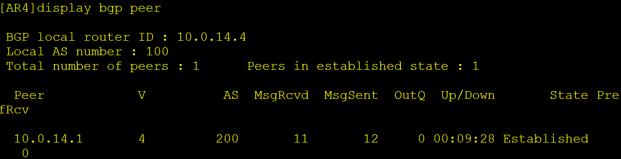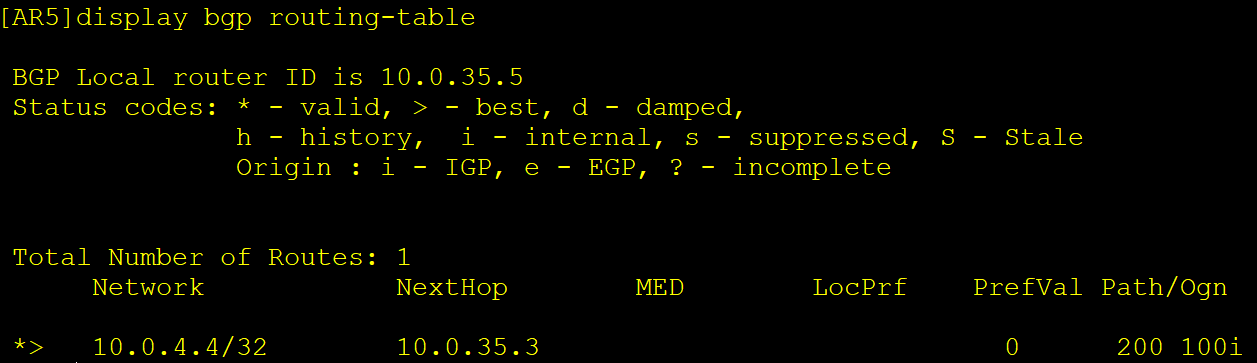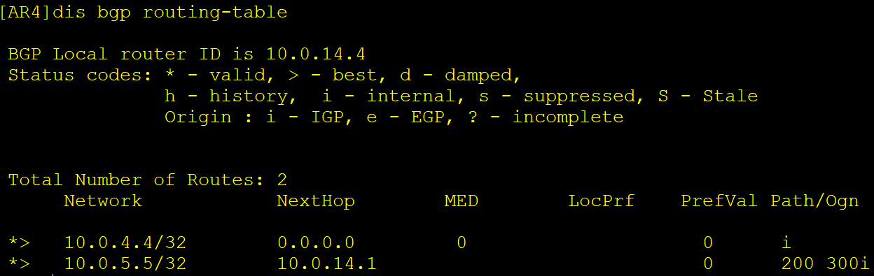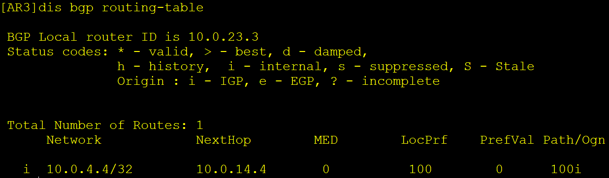 可以看到我们AR1学习到了AR4发布的Loopback1接口的IP地址,并且是有效且最优的
