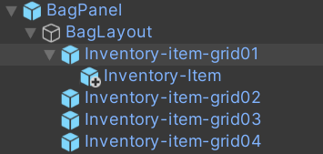 Inventory-item-grid是背包格子预制体,Inventory-item是物品预制体