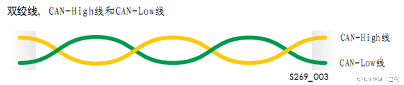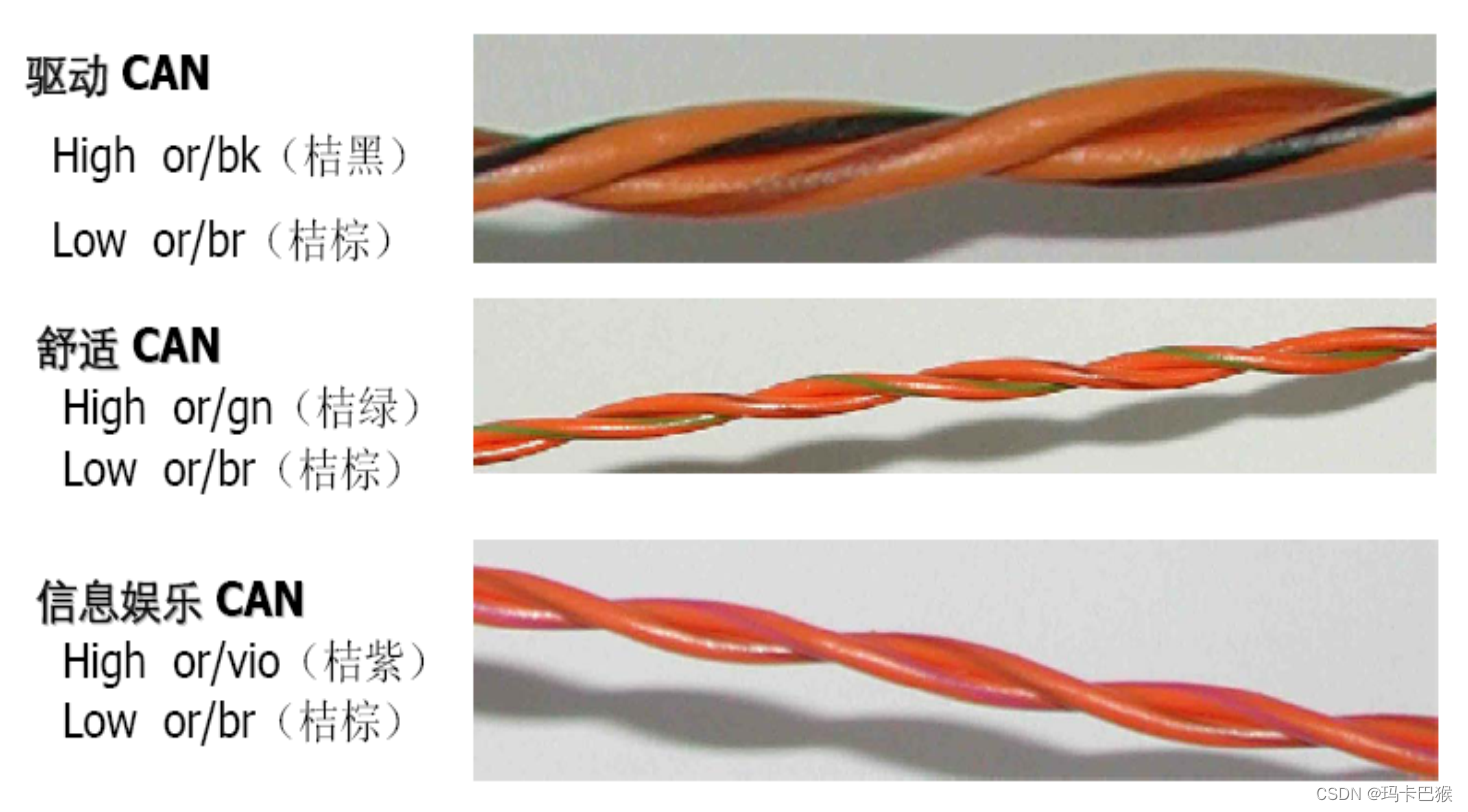为了清楚起见CAN导线分别用单颜色来表示CAN-High线总是黄色,CAN-Low-线总是绿色 ,分别用于不同的数据传送