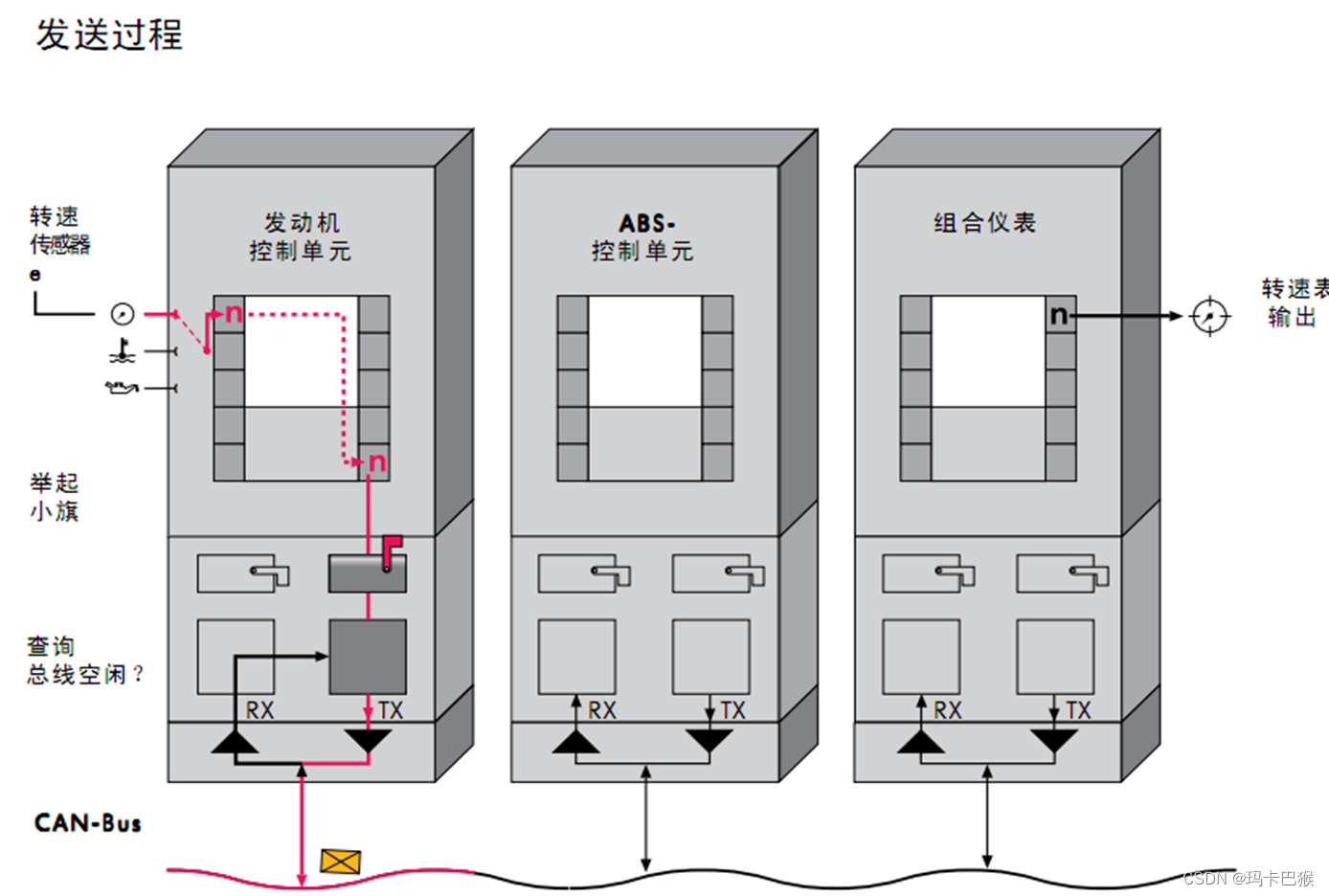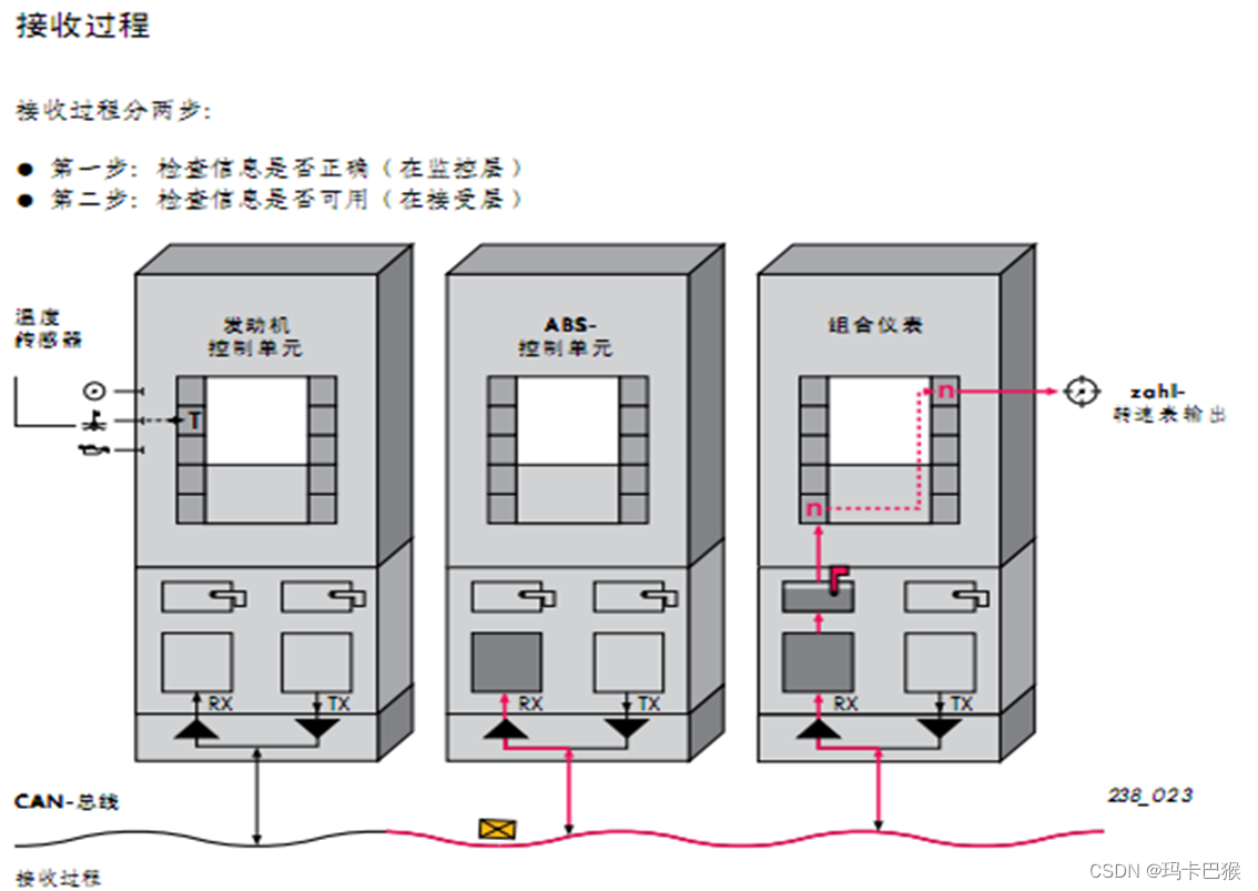 控制单元是通过收发器联接到CAN驱动总线上的,在这个收发器内有一个接收器,该接收器是安装在接收一侧的差动信号放大器。