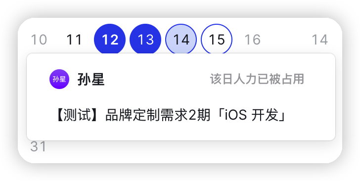 每个任务的排期都不再需要细化到每个小时,我可以在排期内自由掌控我的工作时间,根据优先级和困难度合理安排。而且给新任务排期时还会显示人力占用情况,使用起来非常方便。