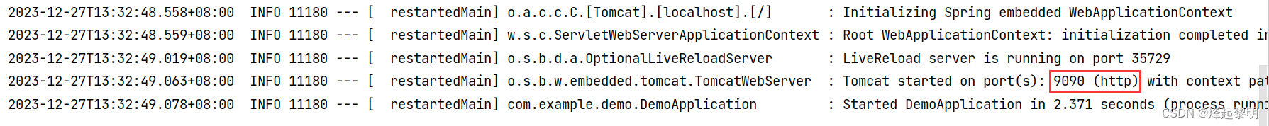 然后在修改之后我们再去启动项目可以发现端口号被修改成为9090