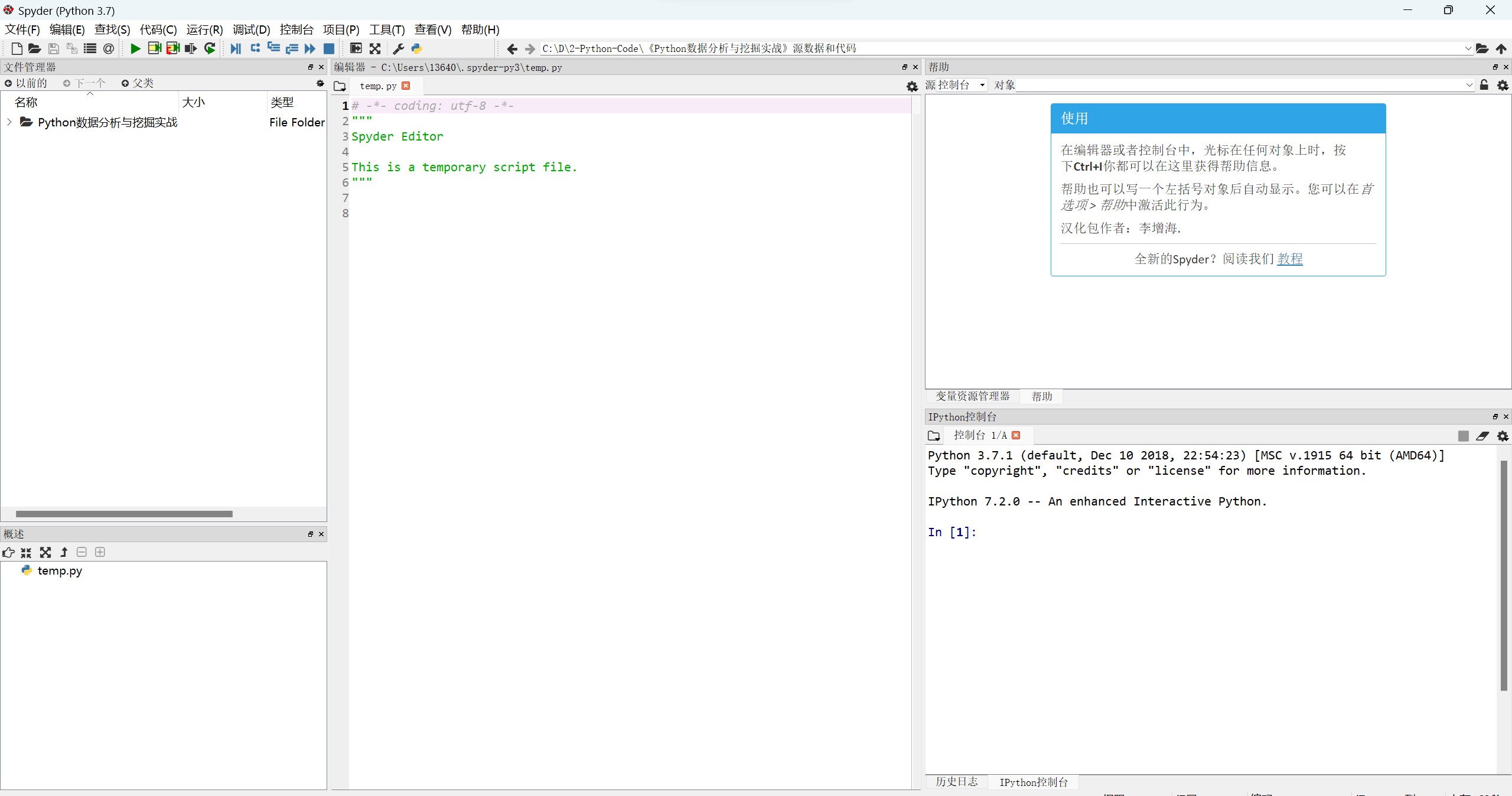 spyder(anaconda3)进行汉化 如何按照过程一能够完成,则不需要进行过程二过程一:进入工作页面直接进行设置1.打开Spyder工作页面,如下图:2.点击Tools(工具),弹出页面选择Preference(偏好设置),如下图:3.选择General(通用),点击Advanced Settings(高级设置),如下图:4.在language(语言)处找到简体中文,选择并点击OK5.选择Yes,重启Spyder6.重启后,汉化完成过程二:安装汉化包1.可是有时遇到,下图情况,不出现简体中文选项,需将软件版本更新到