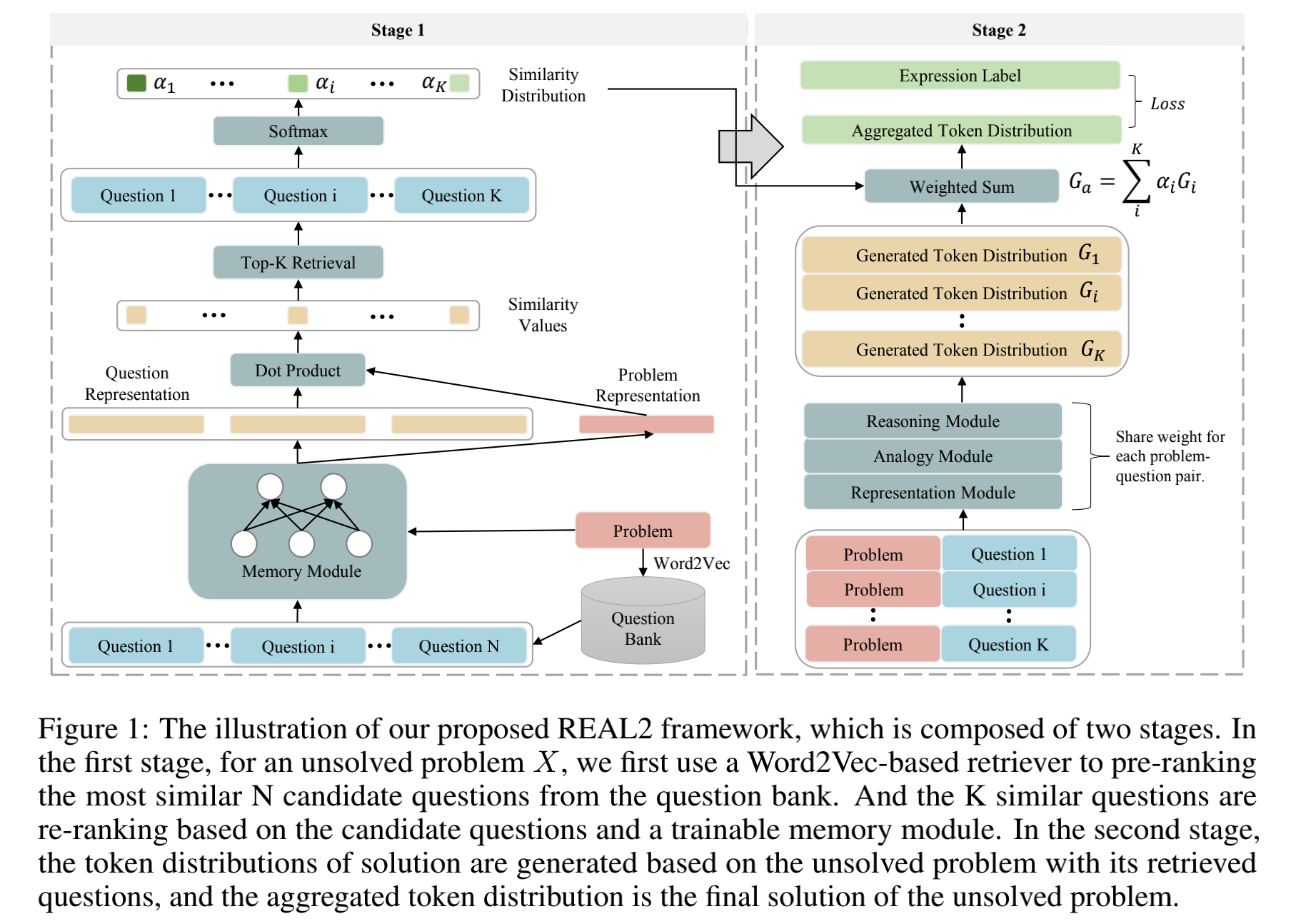 REAL2-融合检索和生成的端到端数学应用题自动解题 本篇文章主要讲解本人在今年 NIPS2021 Workshop MATHAI4ED发表的一篇关于应用题自动解题的论文(打开超链接可以看到REAL2模型的Paper,Poster, Video等信息)。 同时本篇文章也是REAL模型的改进,因此阅读本篇文章之前,建议先阅读REAL模型:REAL4MWP-基于记忆增强的应用题自动解题方法。 论文题目为:REAL2: An End-to-end Memory-augmented Solverfor Math Word Problems 代码已开源