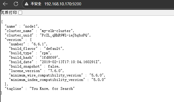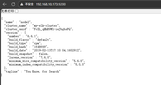 http://192.168.10.173:9200 查看节点 Node1、Node2 的信息。