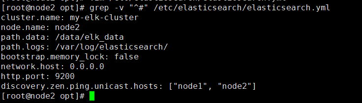 grep -v "^#" /etc/elasticsearch/elasticsearch.yml (过滤以#开头)