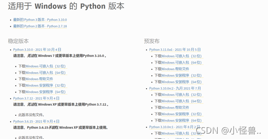 先进入官网https://www.python.org/downloads/windows/
