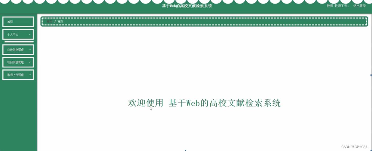 教师通过登录进入系统可查看个人中心、公告信息管理、项目信息管理、教师上传管理等内容,如图5-6所示。