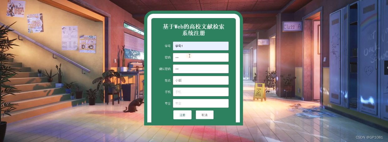 学生注册,学生通过输入学号、密码、姓名、手机、专业进行注册,如图5-1