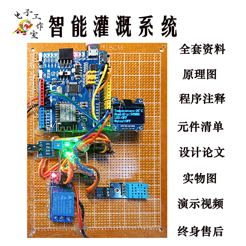 基于STM32和ESP8266的智能灌溉系统【土壤湿度监测继电器OLED显示WIFI控制器APP水泵】 系统功能基于STM32和ESP8266的智能灌溉系统主要由STM32单片机主控器模块、YL-69湿度传感器模块、DTH11温度传感器模块、SRD-05VDC-SL-C继电器模块、灌溉模块、液晶显示屏模块、WIFI模块和太阳能供电等部分组成。系统可在液晶显示屏上显示实时传感器数据,并且将传感器数据通过WIFI模块上传至云端,具备实时监控的功能,方便用户实时查看数据。该系统具有精度较高、操作简便、成本较低等特点。......