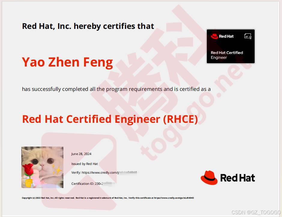 2)RHCE:再次参加并通过EX294或参加并通过RHCA任意一门考试