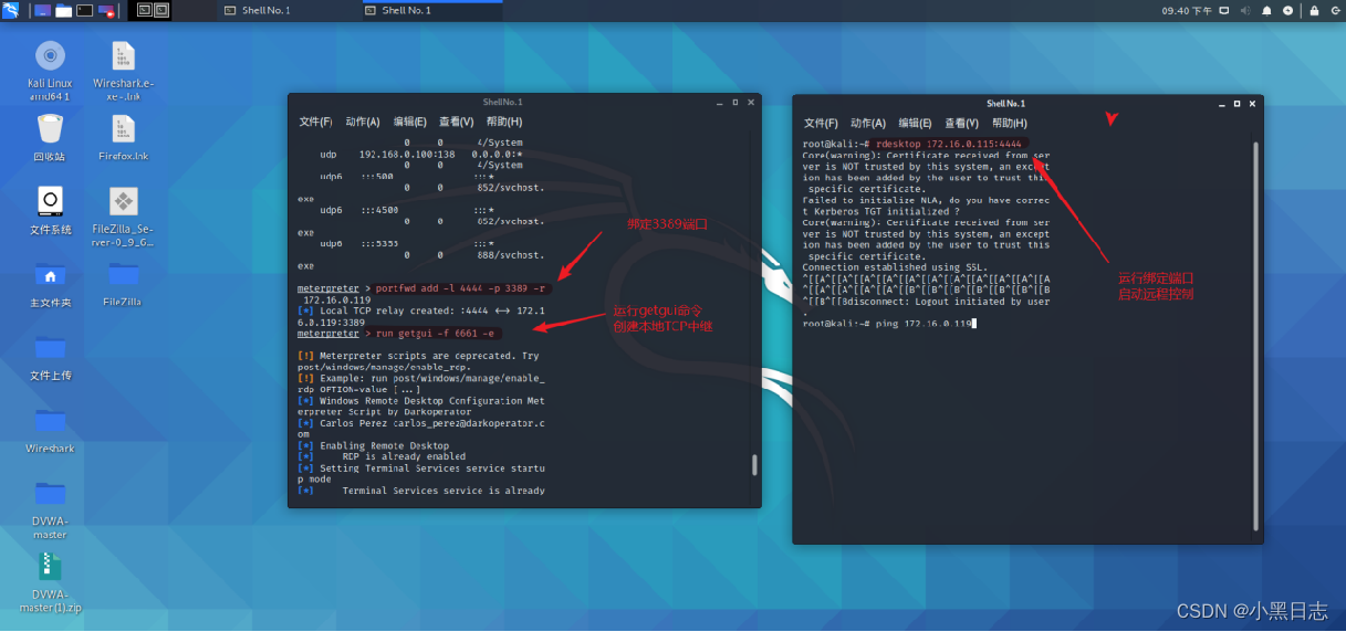portfwd add –l 2222 –p 3389 –r 172.16.0.119(目标机)