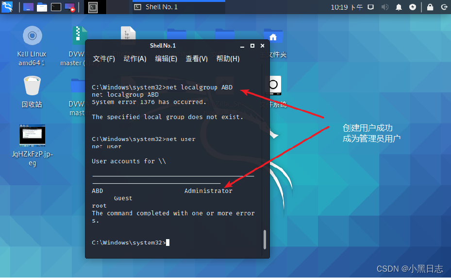 进入后门植入(创建新的管理员账户)