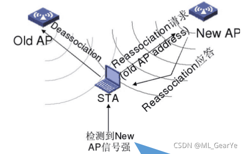 当STA扫描到信号更强的信的AP时,需先和原来的AP去关联,在才能和新的AP建立关联。