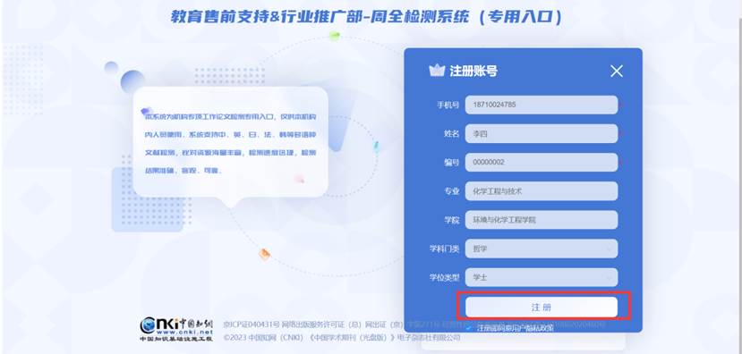 重要提示:如果在注册时提示“您已注册,请直接登录”情况即为该手机号已经注册过知网账号了(知网账号全平台可通用),可直接用最开始注册密码进行登录,如忘记最早密码,可登录网址(https://www.cnki.net/)右上角“登录,找回密码”重置密码后,即可回到原网址直接登录