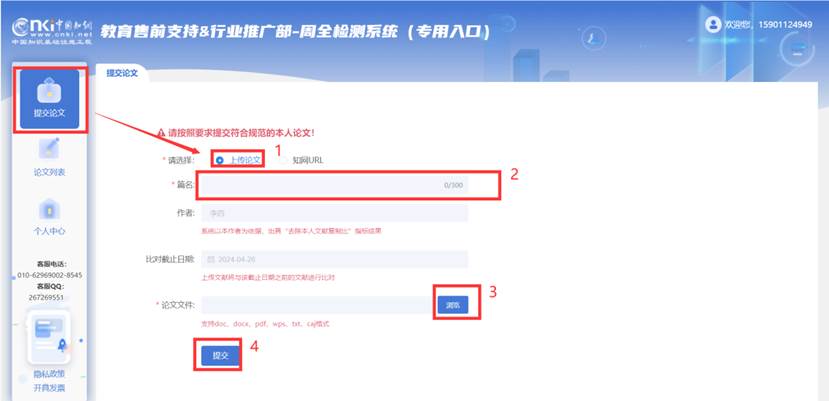 - 在提交论文页面选择“上传论文”--输入篇名--点击浏览选中待检测文档--点提交