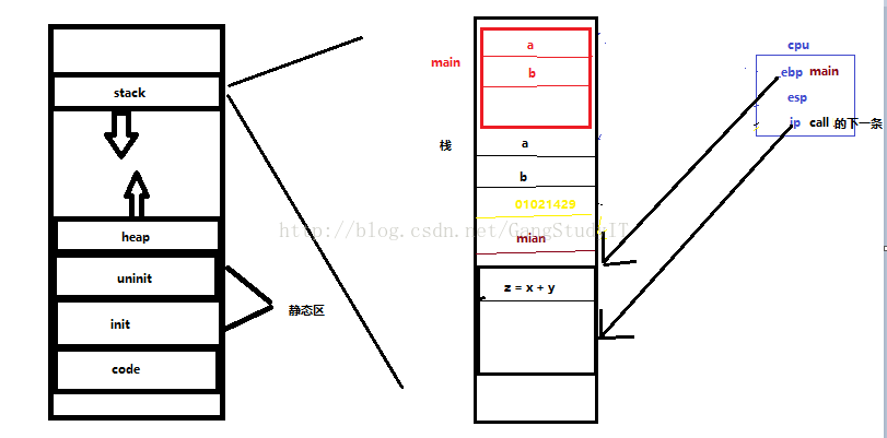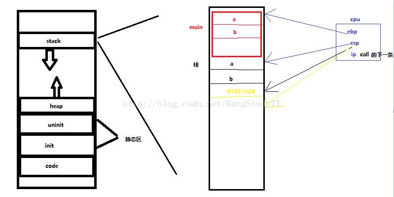 这里咱们就自己的逻辑入口main()函数起,来咱们用图来解释一下函数在栈中的生成调用。