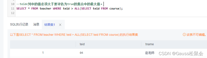 Tip:此示例主要展示ALL的查询效果,实际应用请结合具体场景使用。