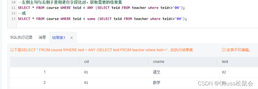 Tip:此示例主要展示ANY/SOME的查询效果,实际应用请结合具体场景使用。