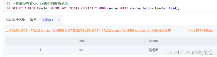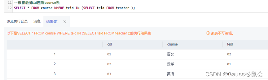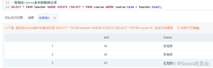 三、GaussDB SQL子查询实验示例