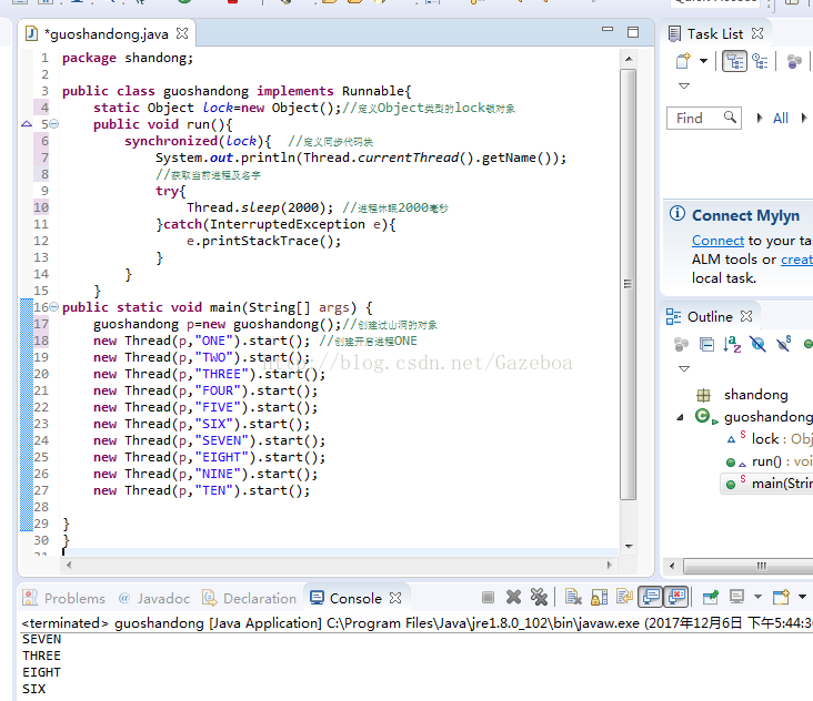 static Object lock=new Object();//定义Object类型的lock锁对象