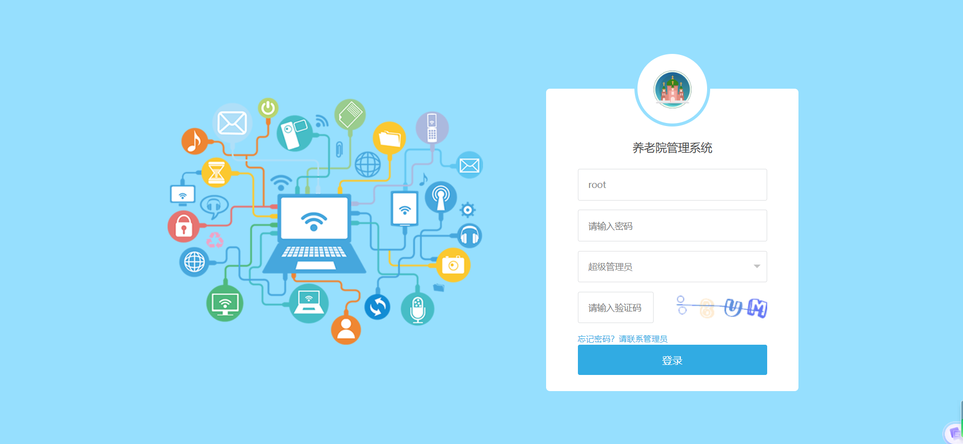 默认系统分为超级管理员,管理员,护工用户角色,不同的角色具有不同的权限: