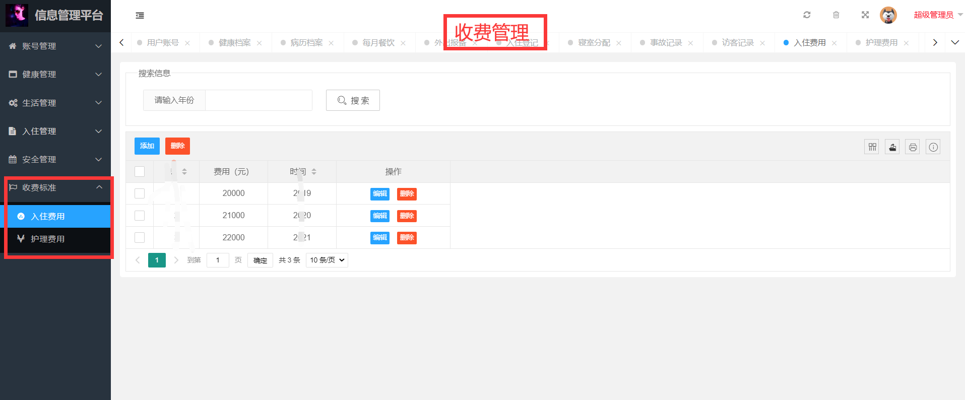 - 收费管理