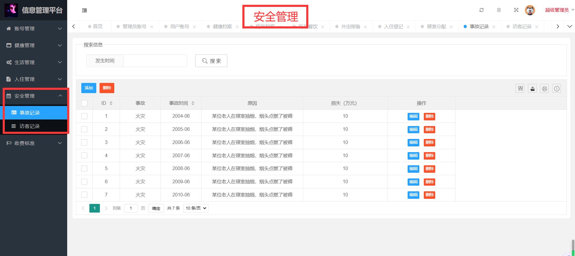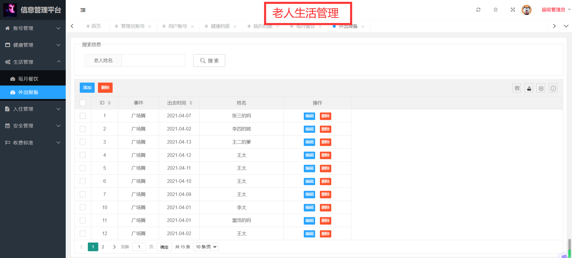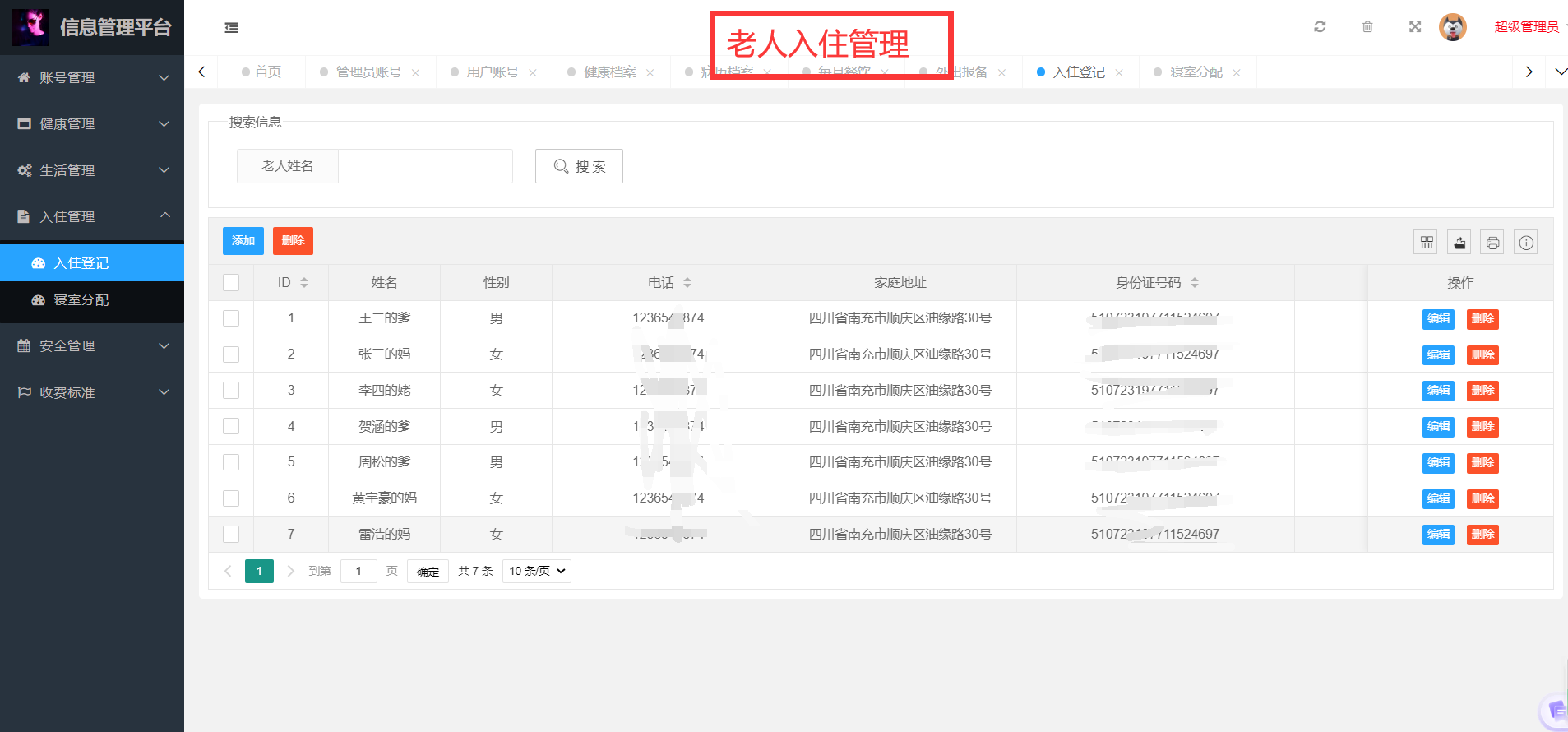 - 老人入住管理