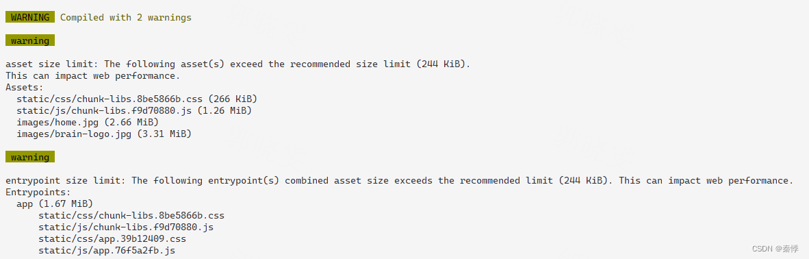 WARNING in asset size limit: The following asset(s) exceed the recommended size limit (244 KiB). 打包报警告