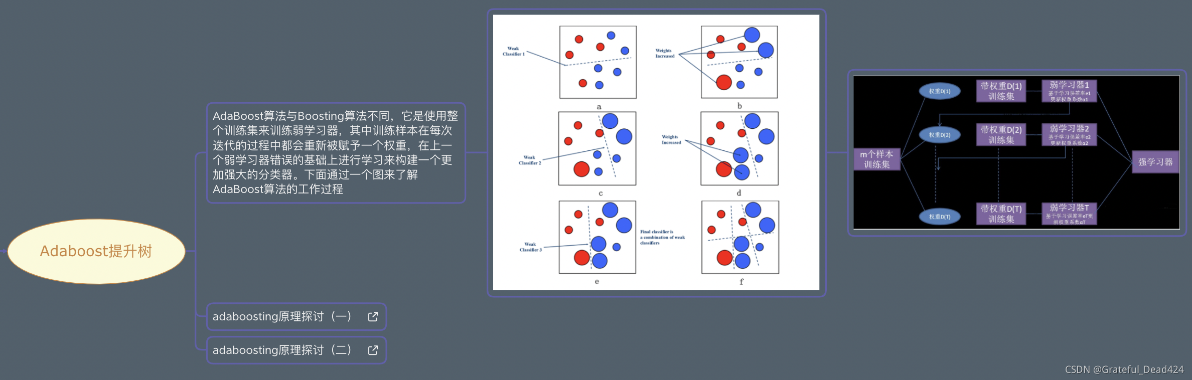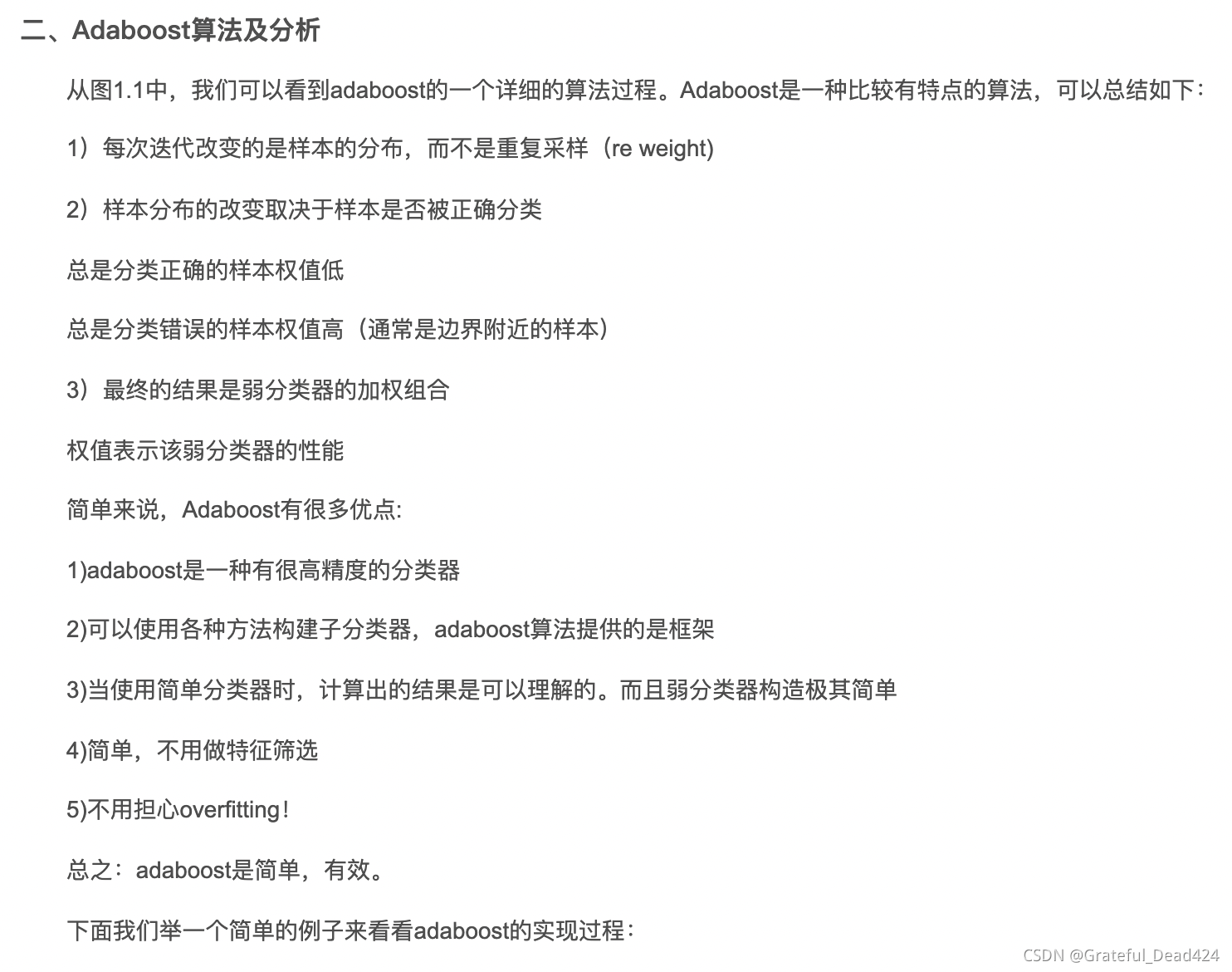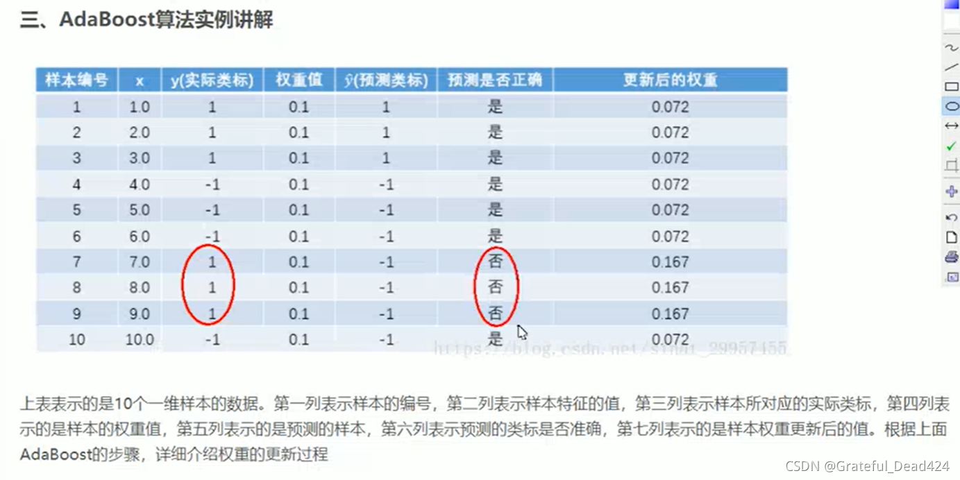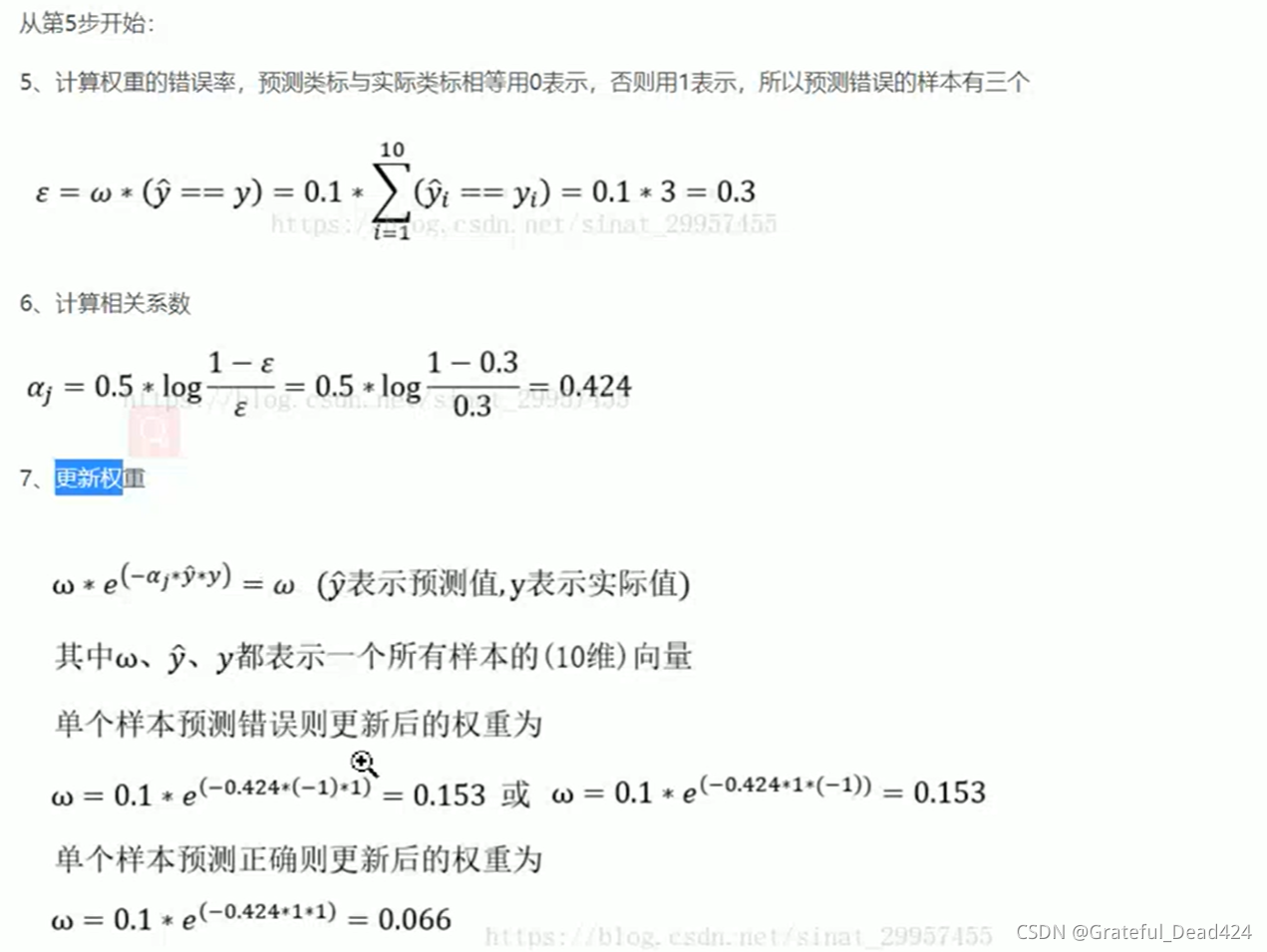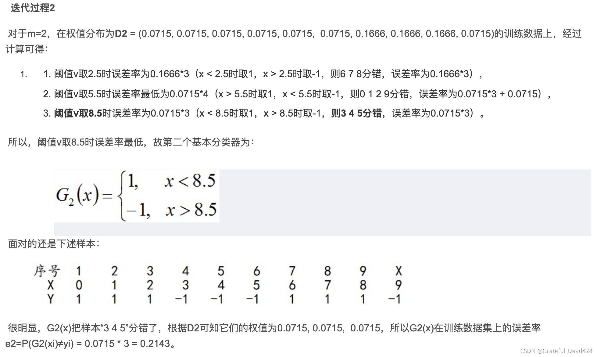 从上述第一轮的整个迭代过程可以看出:被误分类样本的权值之和影响误差率,误差率影响基本分类器在最终分类器中所占的权重