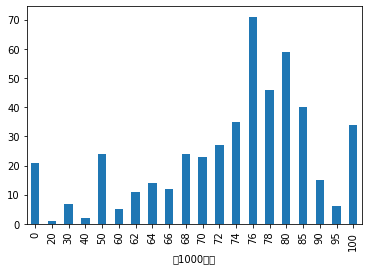 data.groupby(["男1000成绩"])["BMI_score"].count().plot(kind = "bar")