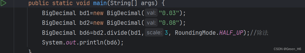 BigDecimal bd3=bd1.divide(bd2,精确到几位,舍入模式)