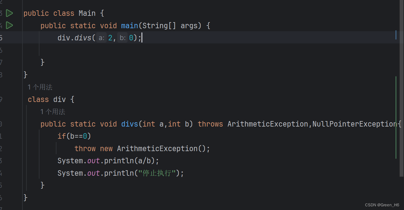 Ⅱ.throw写在方法内,用于结束方法 并抛出异常对象交给调用者,之后的代码也就不会运行了