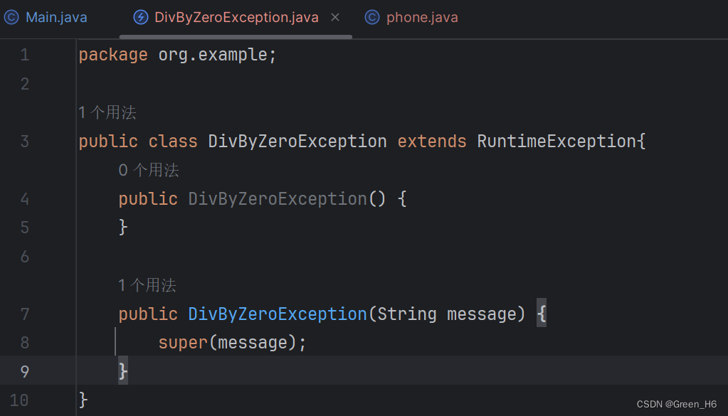 先自定义一个异常,异常如果是运行时异常要继承RunTimeException如果是编译时异常则直接继承Exception,(同理别忘了如果方法类可能出现编译时错误要在方法后用throws声明,之前提到过)