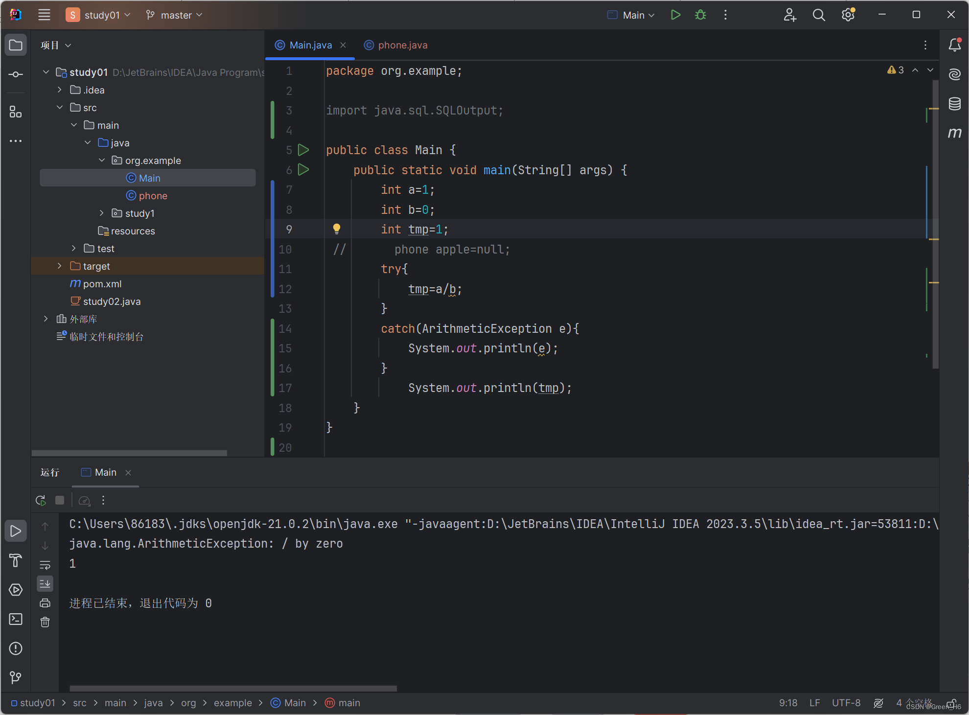 用这种异常再次运行上次那个分母为0的代码,得到的结果如下图