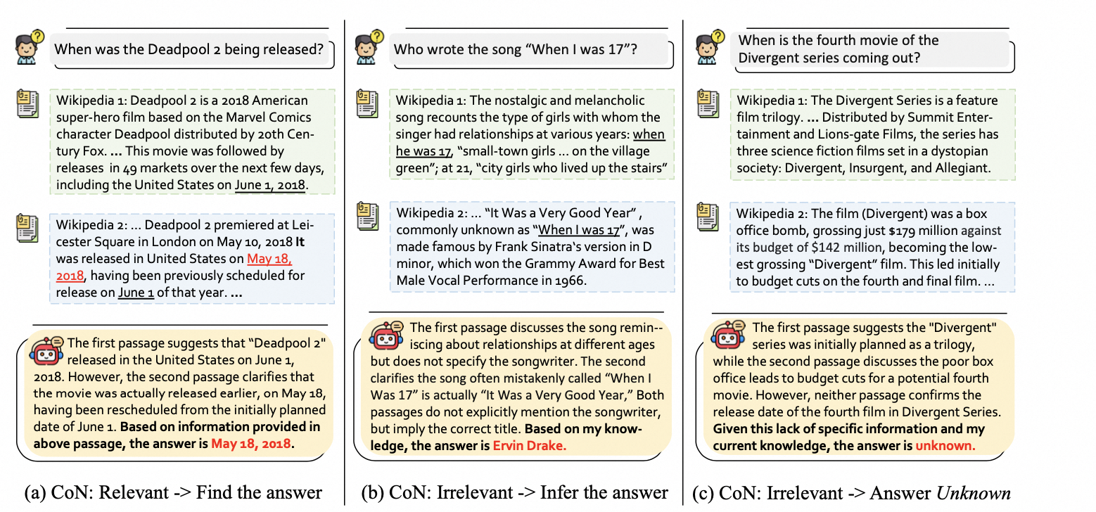本篇paper CON(Chain-of-Note)主要就是解决上面两个问题: