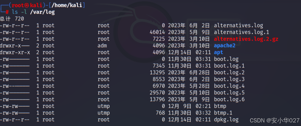 - 查看系统日志目录:ls -l /var/log,列出系统日志文件所在目录下的日志文件列表及详细信息。