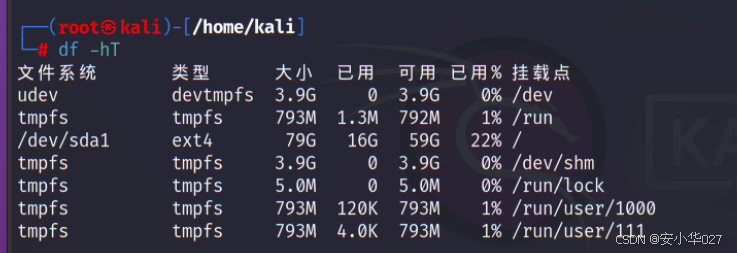 - 磁盘使用量查看:df -hT,以人类可读格式显示各磁盘分区总大小、已使用、可用空间及文件系统类型等磁盘空间使用情况。