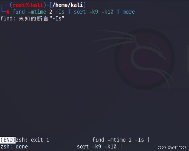 - find ~ -mtime 2 -ls | sort -k9 -k10 | more:在用户主目录下查找两天内修改过的文件,以长列表显示,按第九、十列排序并分页展示结果。