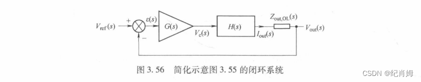 此处提供了闭环系统简化示意图,控制量即输入量变为恒定电压 Vref,系统前向电路首先输出电流量,再用输出负载转化为电压量