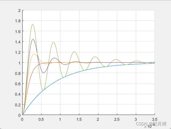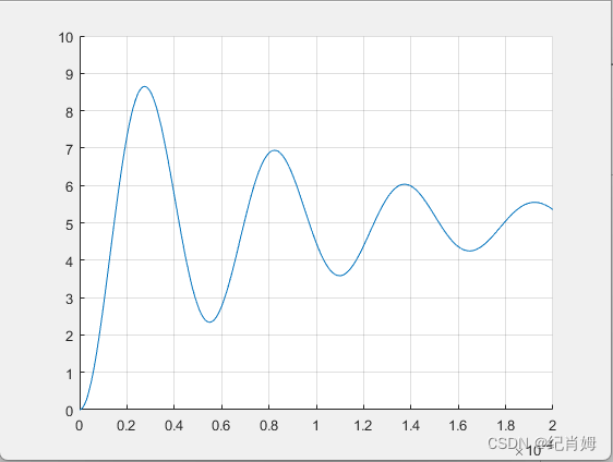 将 Q 值设定为 2 ,可以得到较具有代表性的欠阻尼输出图像如下