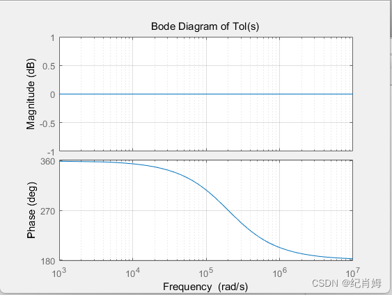 曲线如下所示,幅频上没有任何衰减,但是相位将衰减到最高 -180°