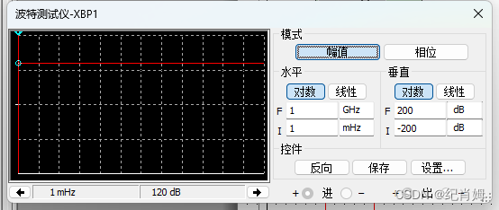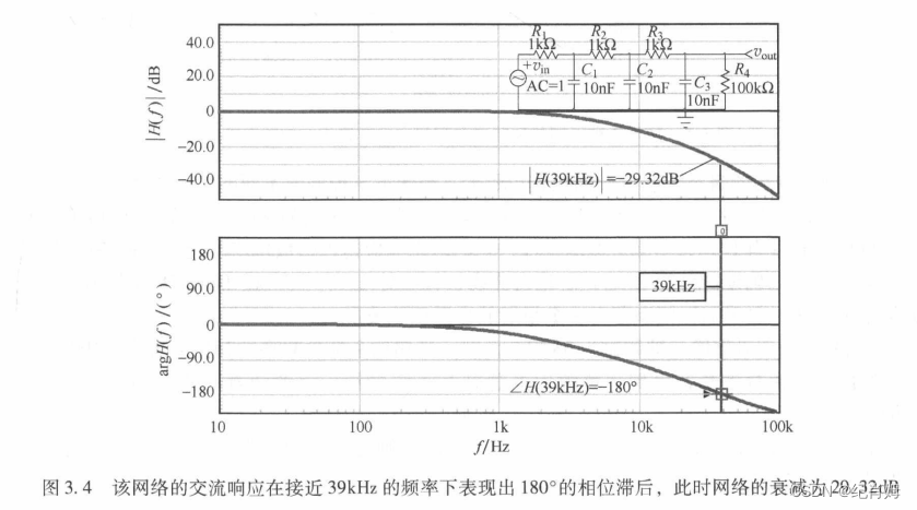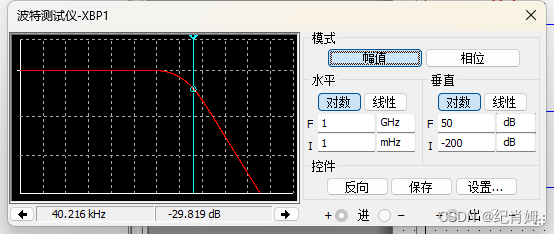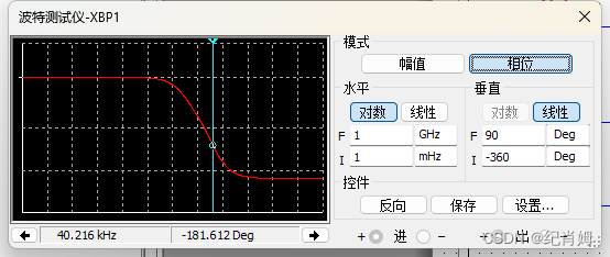 只研究 H(s) 部分,利用波特仪得到其伯德图,可知相位 180° 左右频率值约为 40k ,对应幅值衰减越为 -30dB