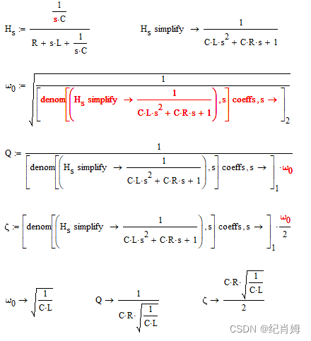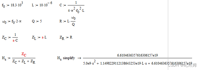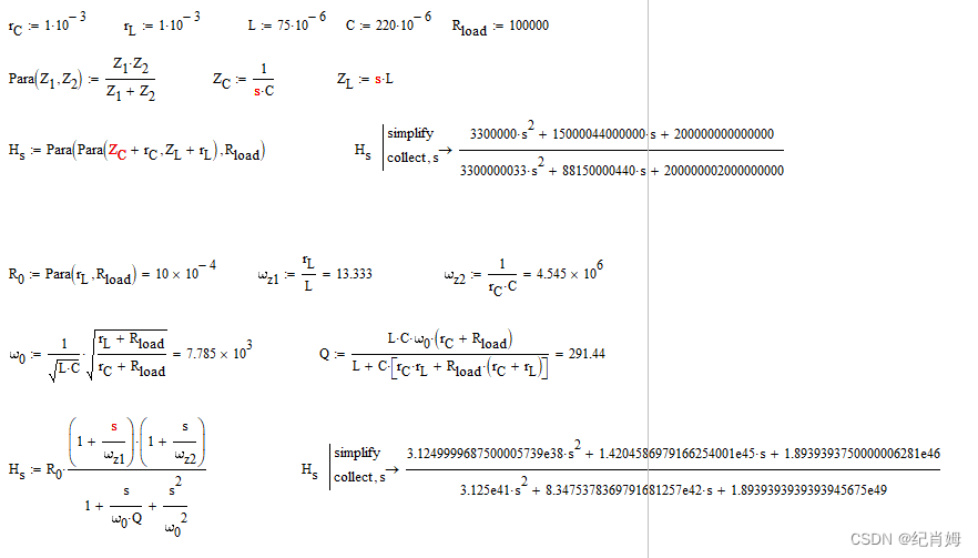 接下来放弃这些参数,仅通过 R 、L 、C 元件的值来构造相应的传函,式子如下