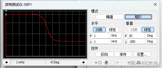 参数配置如上图所示即可,仿真结果如下,幅频一直不变相频下降 270 度,多余的下降数是因为加法器存在一个反相输入端