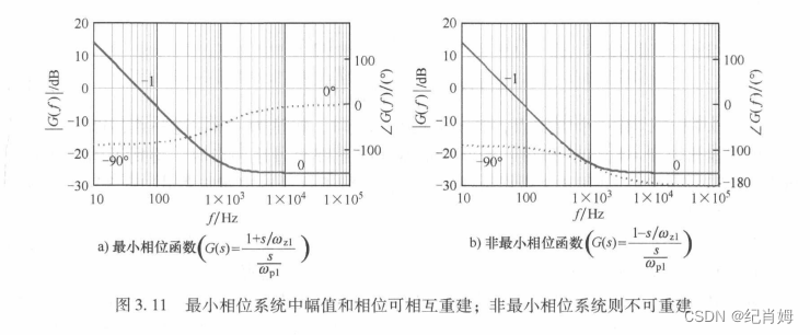 对于最小相位系统而言,仅需伯德图的一部分,即幅频或者相频曲线就可倒推整个系统函数(通常使用幅频),这是因为最小相位系统的幅值特性和相角特性具有唯一对应关系。但对于非最小相位系统,只能通过幅频曲线确定零极点位置 - 相频曲线确定零极点极性的方式判断。理论上而言,如果拥有一个非最小相位系统的幅频和相频曲线,确实可以通过一定的数学方法来获取其传函,但是这通常涉及到一些复杂的数学方法,不在作为工程师的考虑范围之内